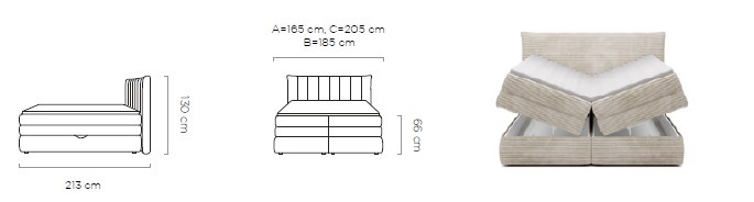 Dostupná ve třech rozměrových šířkách: A-140x200 cm / B-160x200 cm / C-180x200 cm