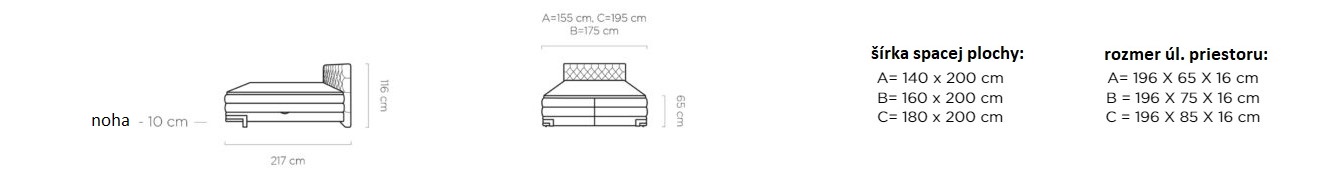 Dostupná ve třech rozměrových šířkách: A-140x200 cm / B-160x200 cm / C-180x200 cm