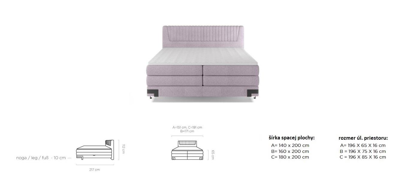 Dostupná ve třech rozměrových šířkách: A-140x200 cm / B-160x200 cm / C-180x200 cm
