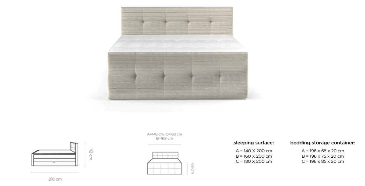 Dostupná ve třech rozměrových šířkách: A-140x200 cm / B-160x200 cm / C-180x200 cm