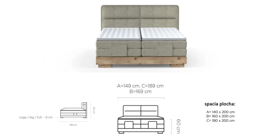 Dostupná ve třech rozměrových šířkách: A-140x200 cm / B-160x200 cm / C-180x200 cm