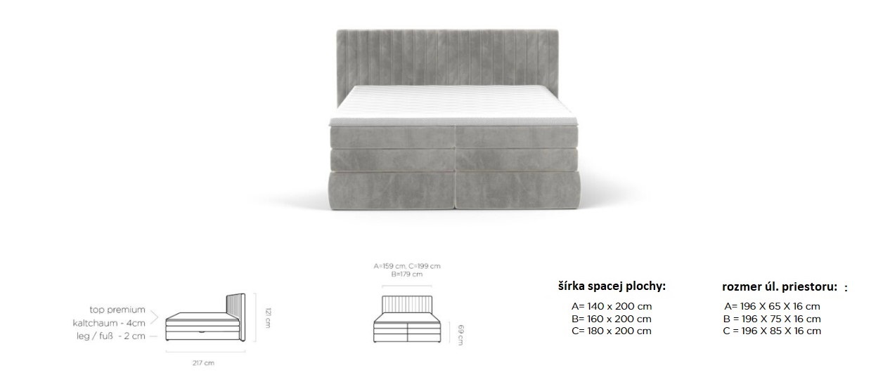 Dostupná ve třech rozměrových šířkách: A-140x200 cm / B-160x200 cm / C-180x200 cm