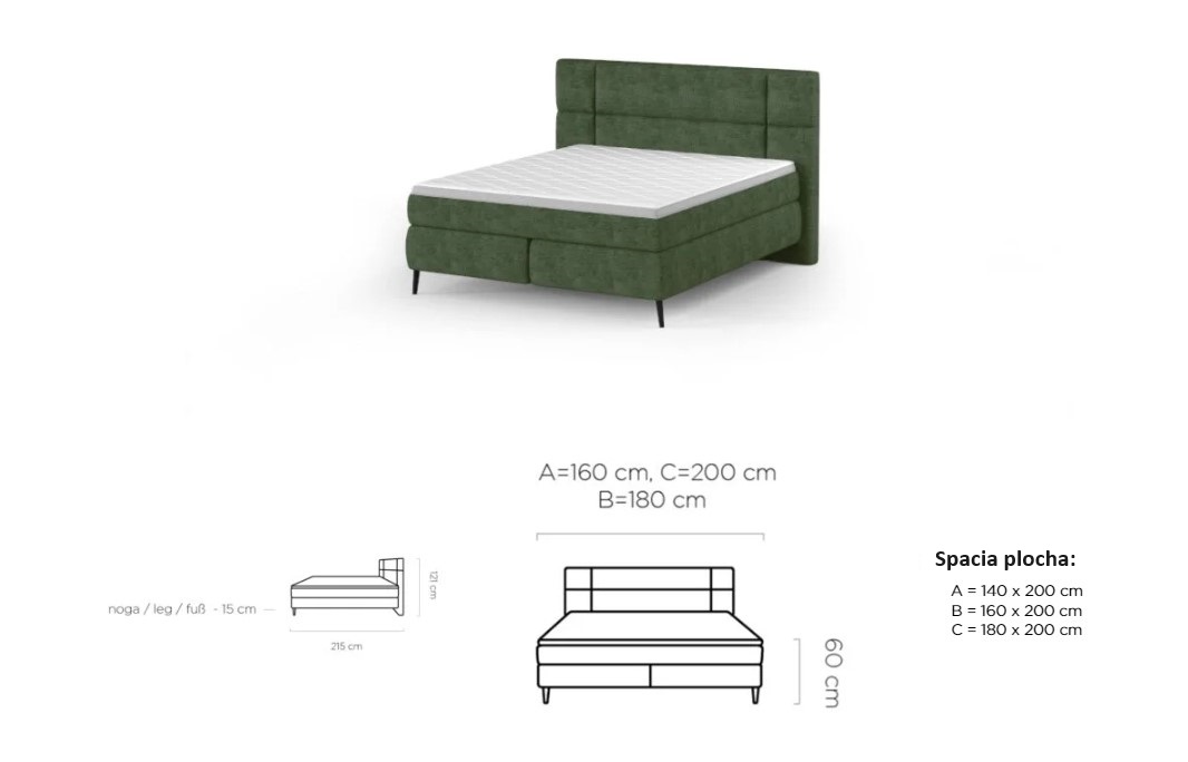 Dostupná ve třech rozměrových šířkách: A-140x200 cm / B-160x200 cm / C-180x200 cm