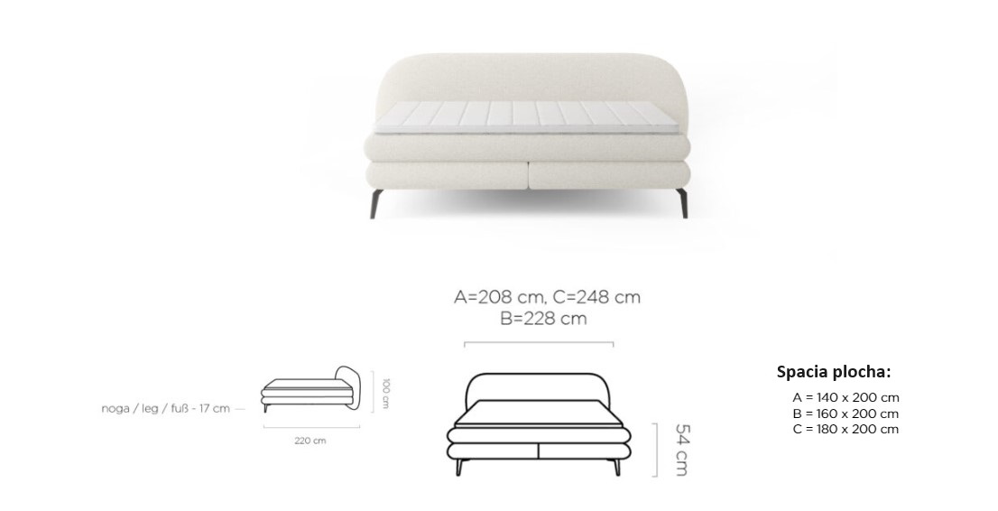 Dostupná ve třech rozměrových šířkách: A-140x200 cm / B-160x200 cm / C-180x200 cm