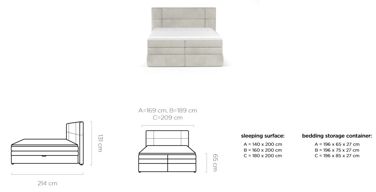 Dostupná ve třech rozměrových šířkách: A-140x200 cm / B-160x200 cm / C-180x200 cm