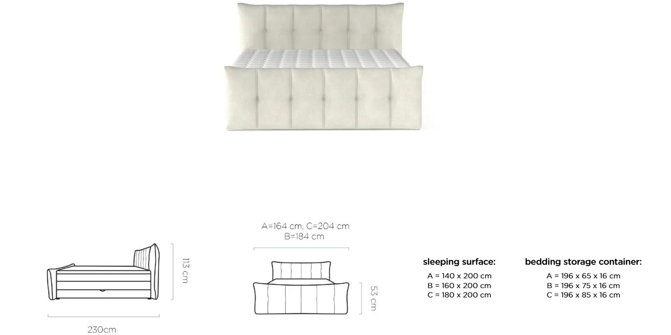 Dostupná ve třech rozměrových šířkách: A-140x200 cm / B-160x200 cm / C-180x200 cm