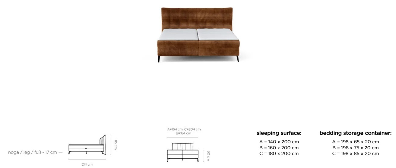 Dostupná ve třech rozměrových šířkách: A-140x200 cm / B-160x200 cm / C-180x200 cm
