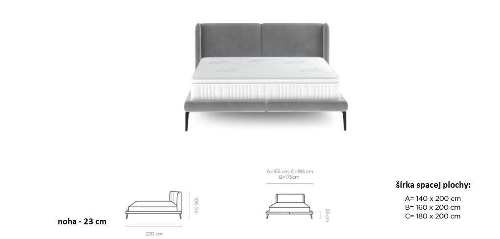 Dostupná ve třech rozměrových šířkách: A-140x200 cm / B-160x200 cm / C-180x200 cm