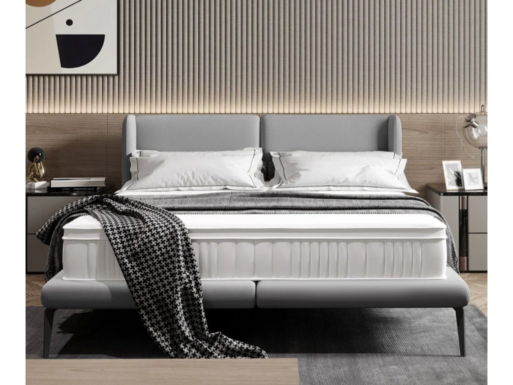 Čalouněná postel RONALD dodávaná bez roštů a matrací.