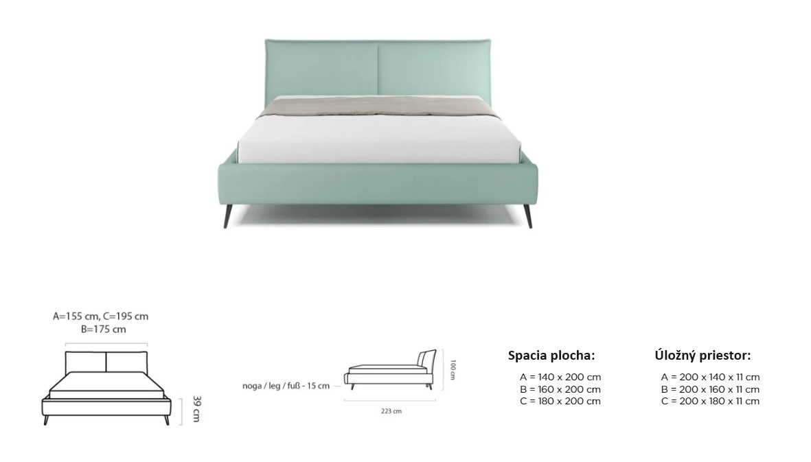 Dostupná ve třech rozměrových šířkách: A-140x200 cm / B-160x200 cm / C-180x200 cm