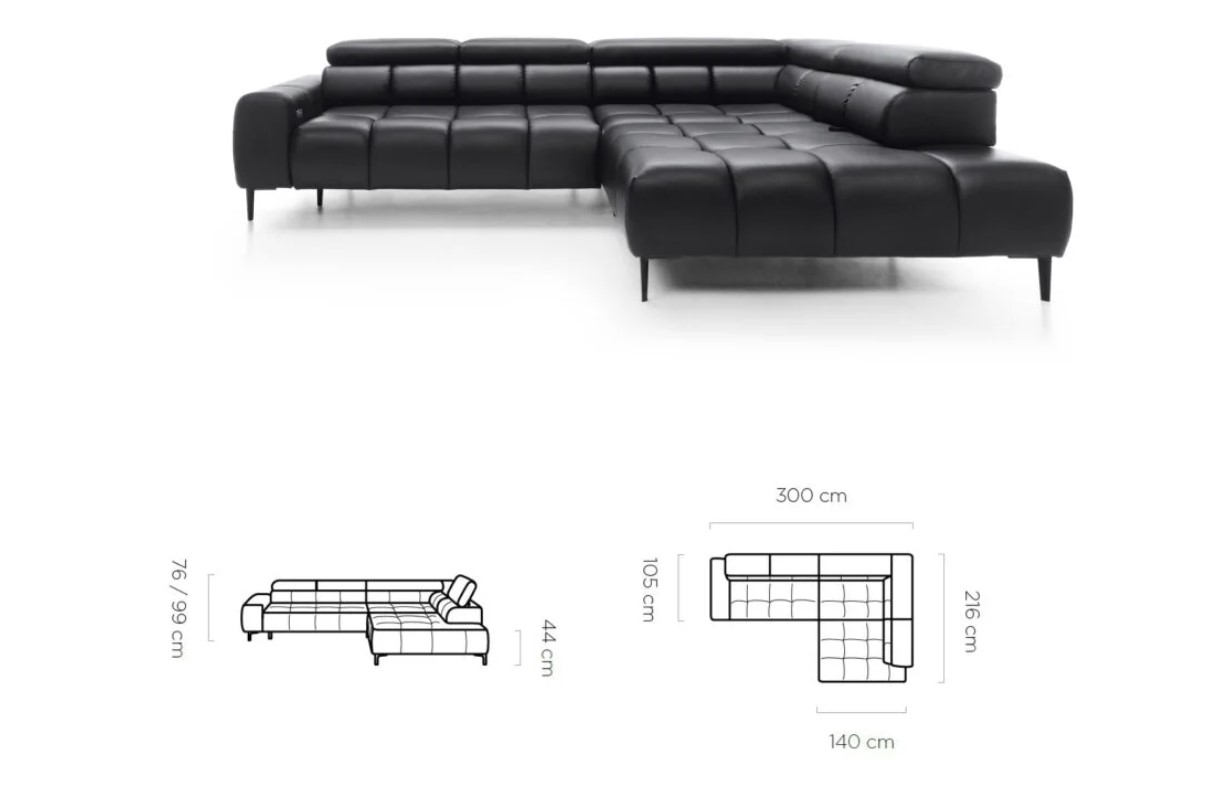 Rozměr: 300 x 216 cm, Výška: 76 / 99 cm, Výška sedu: 44 cm