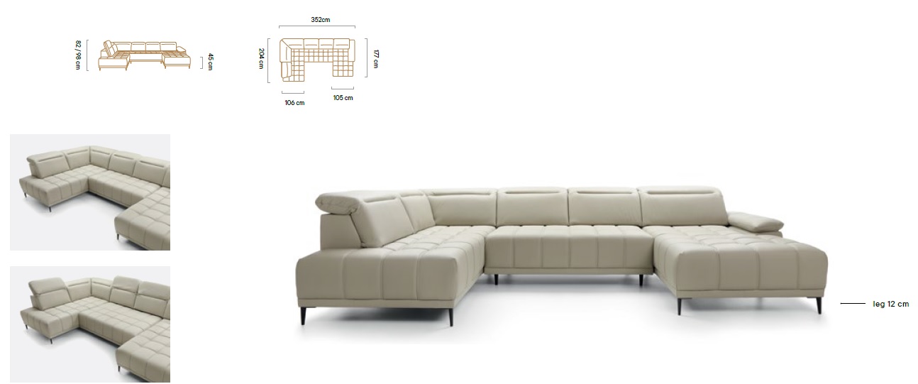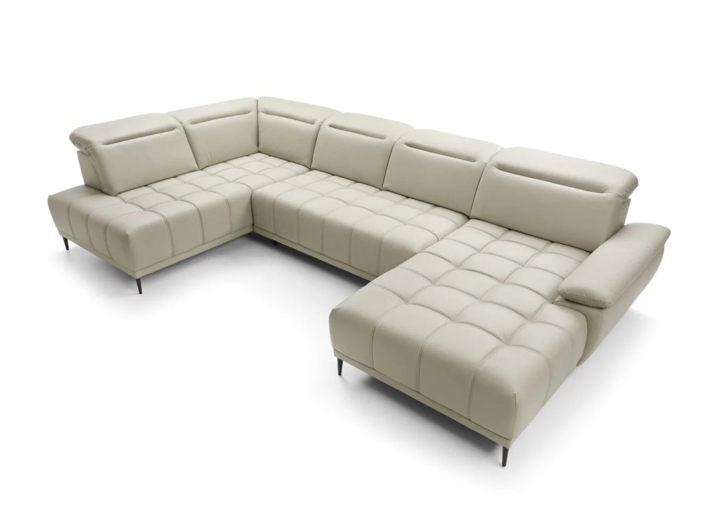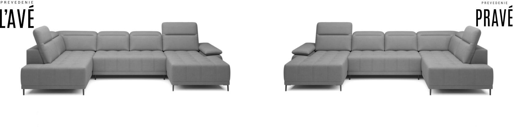 je moderní učková sedačka ve tvaru U, která kombinuje elegantní vzhled, vysoký komfort a pokročilé funkční řešení. Díky svým rozměrům je ideální do prostorných obývacích pokojů a reprezentativních interiérů.