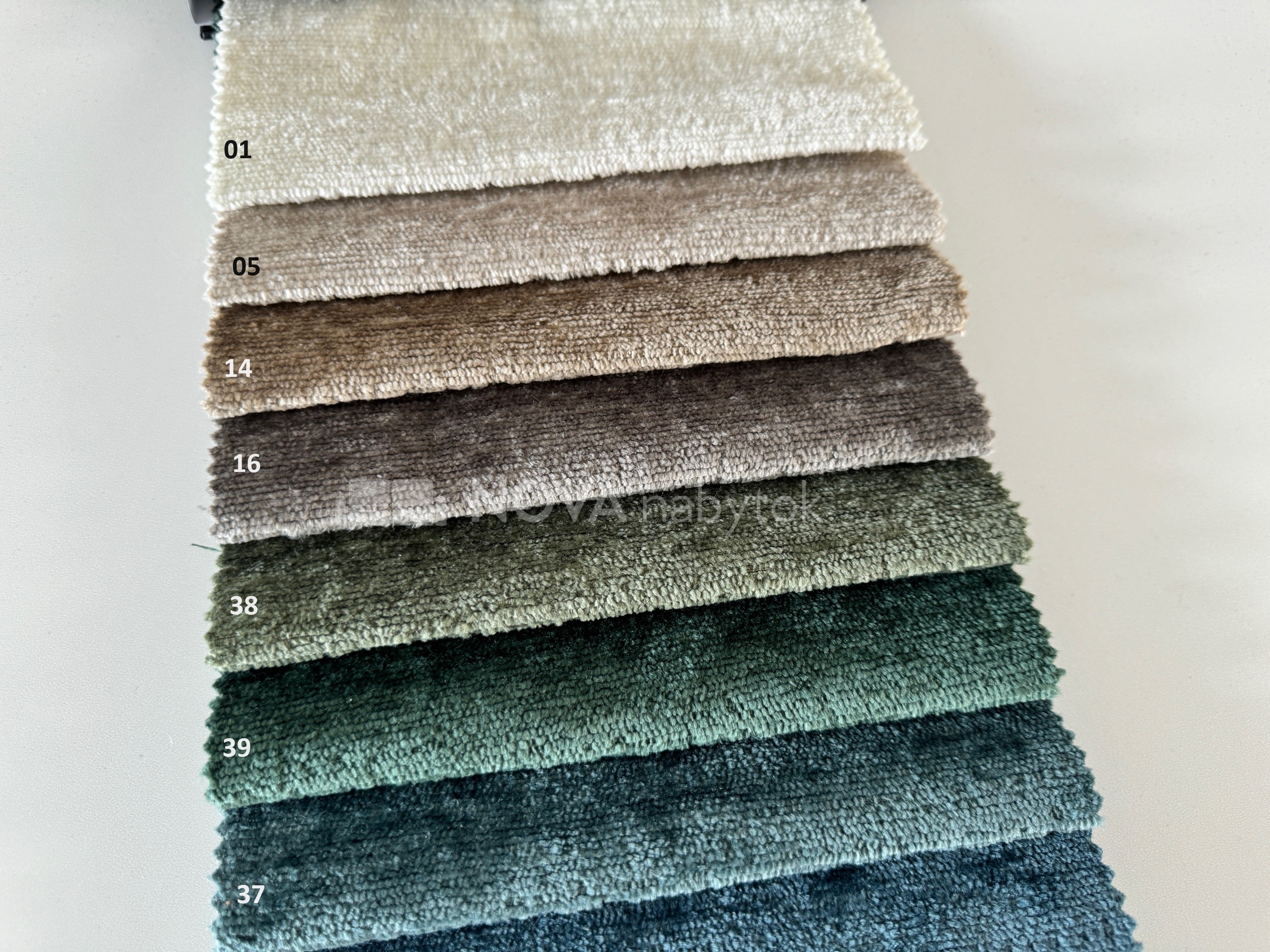 Čalounická látka Loris je velmi příjemná na dotek a vyznačuje se jemnou, mírně výraznou texturou, která dodává interiéru elegantní a útulný vzhled. Díky své kvalitě je ideální pro čalouněný nábytek, polštáře a další bytové doplňky.