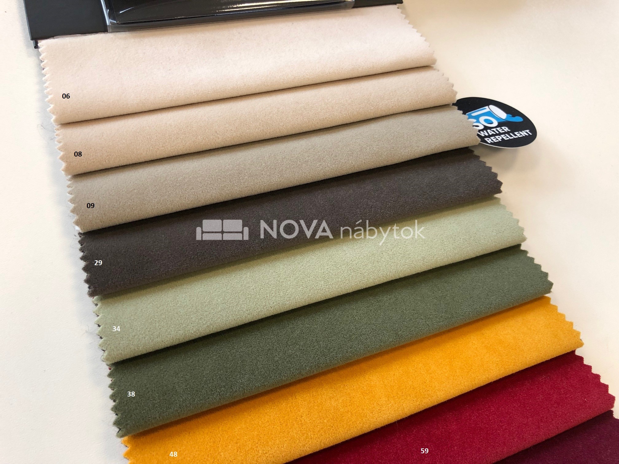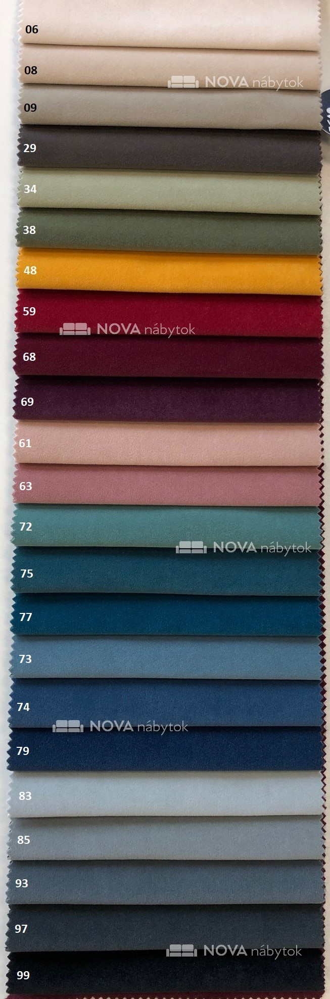 Matt Velvet je luxusní čalounická látka splňující nejvyšší standardy kvality. Patří mezi silnější látky a je velmi příjemná na dotek díky své sametové struktuře. Je vybavena moderní povrchovou úpravou Aqua Clean, která výrazně usnadňuje údržbu – skvrny jednoduše odstraníte vodou bez nutnosti chemického čištění. Molekulární vrstva chrání látku před pronikáním nečistot a prodlužuje její životnost.