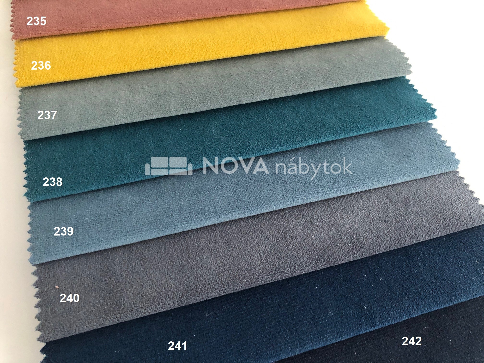 Paleta barev je pestrá a zahrnuje jak decentní neutrální tóny, tak výrazné akcenty. Mezi oblíbené odstíny patří 236 hořčicově žlutá, která dodá interiéru energii, a 235 růžová, která působí jemně a útulně. Velmi žádané jsou také odstíny 241 tmavě modrá a 245 šedá, které se snadno kombinují s moderními interiéry.