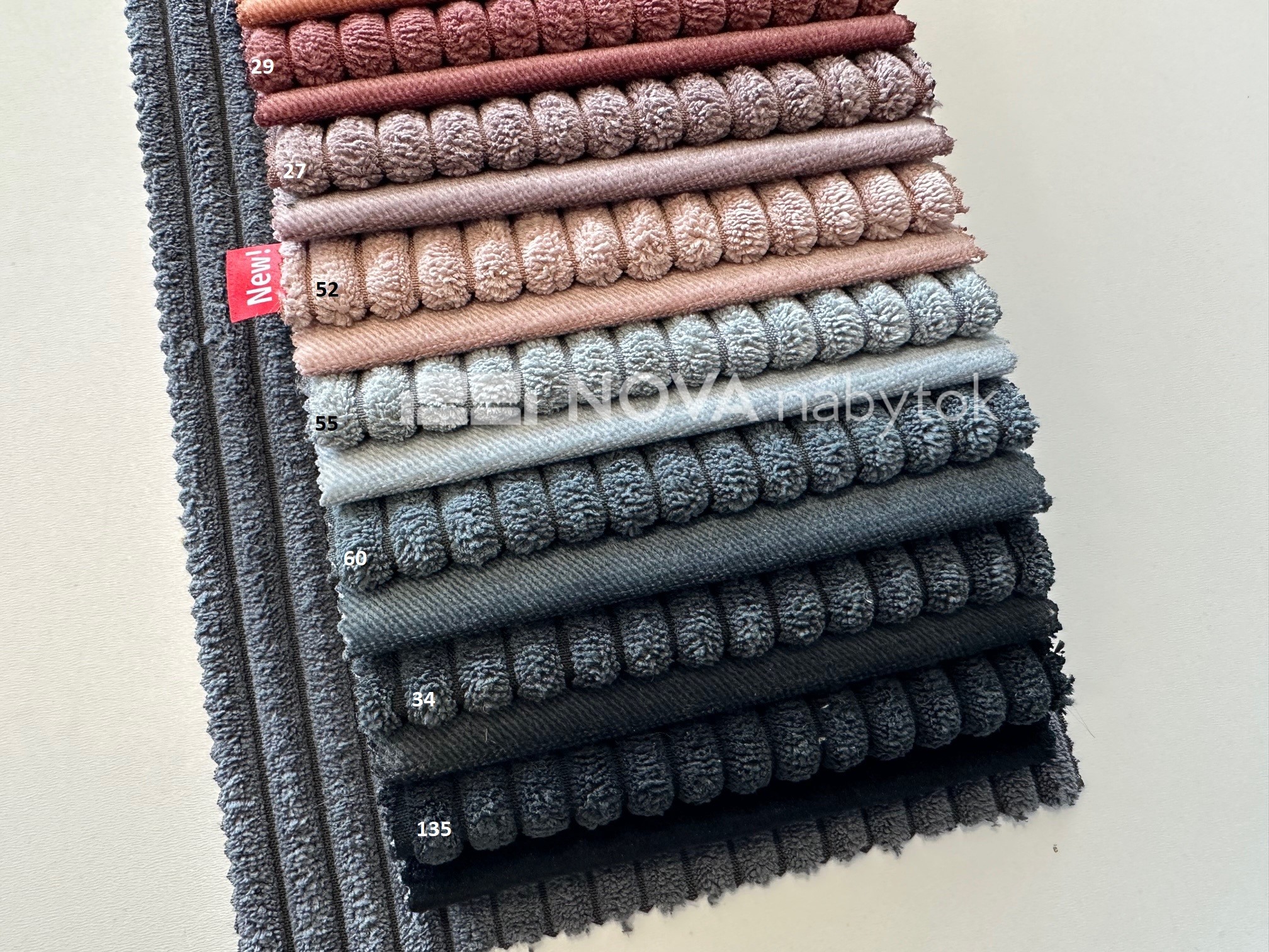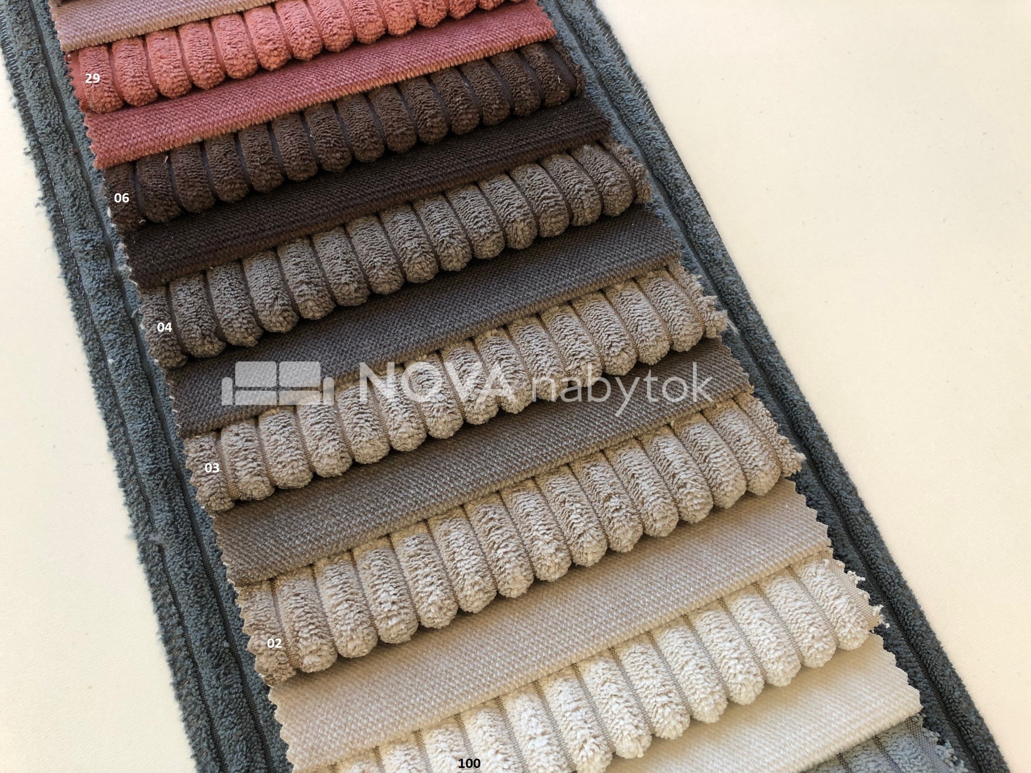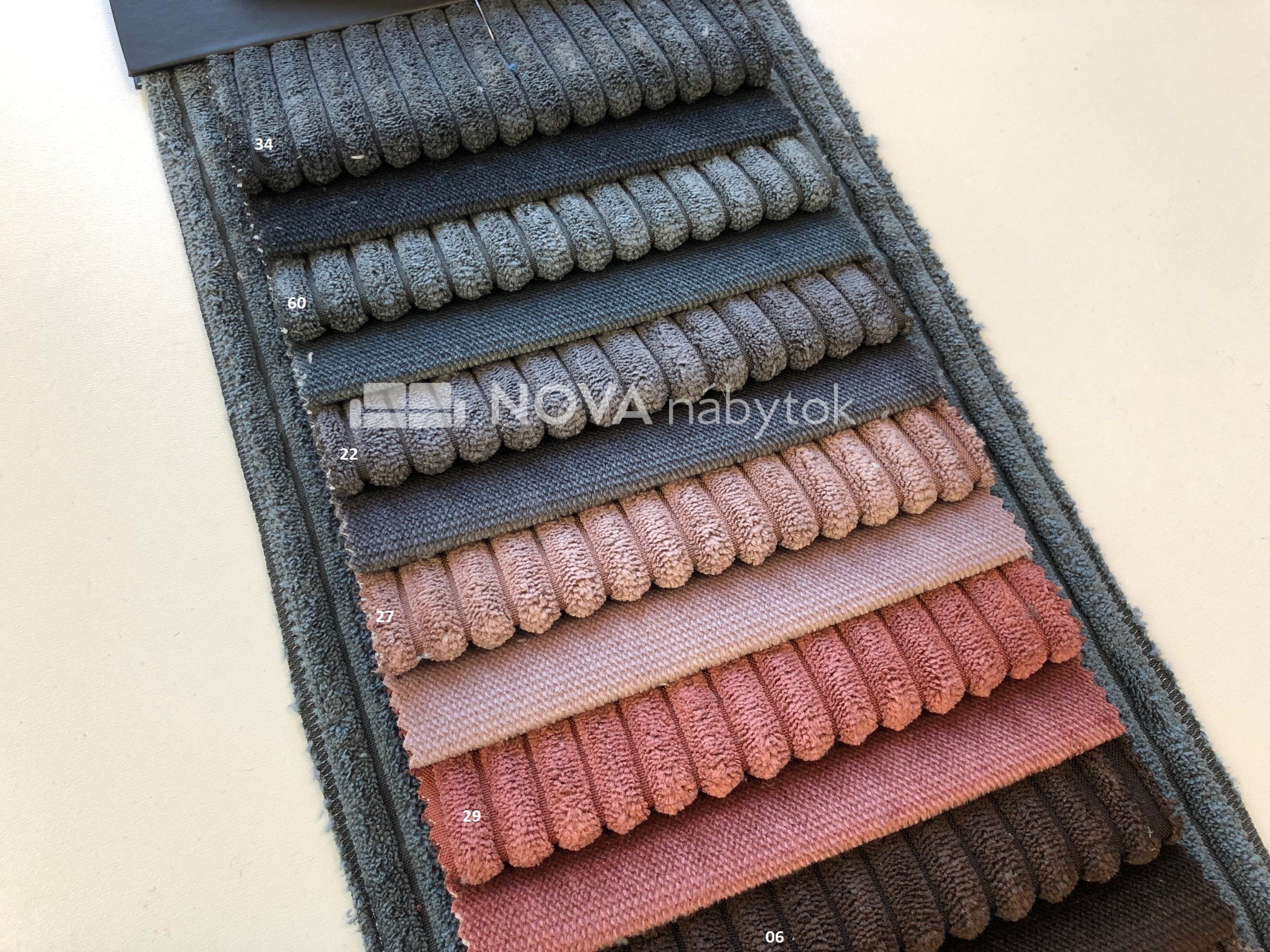 Čalounická látka POSO je velmi příjemná na dotek a působí elegantně díky své jemně strukturované textuře. Díky své odolnosti je vhodná nejen pro sedací soupravy, pohovky a křesla, ale i pro dekorativní polštáře a další bytové doplňky.