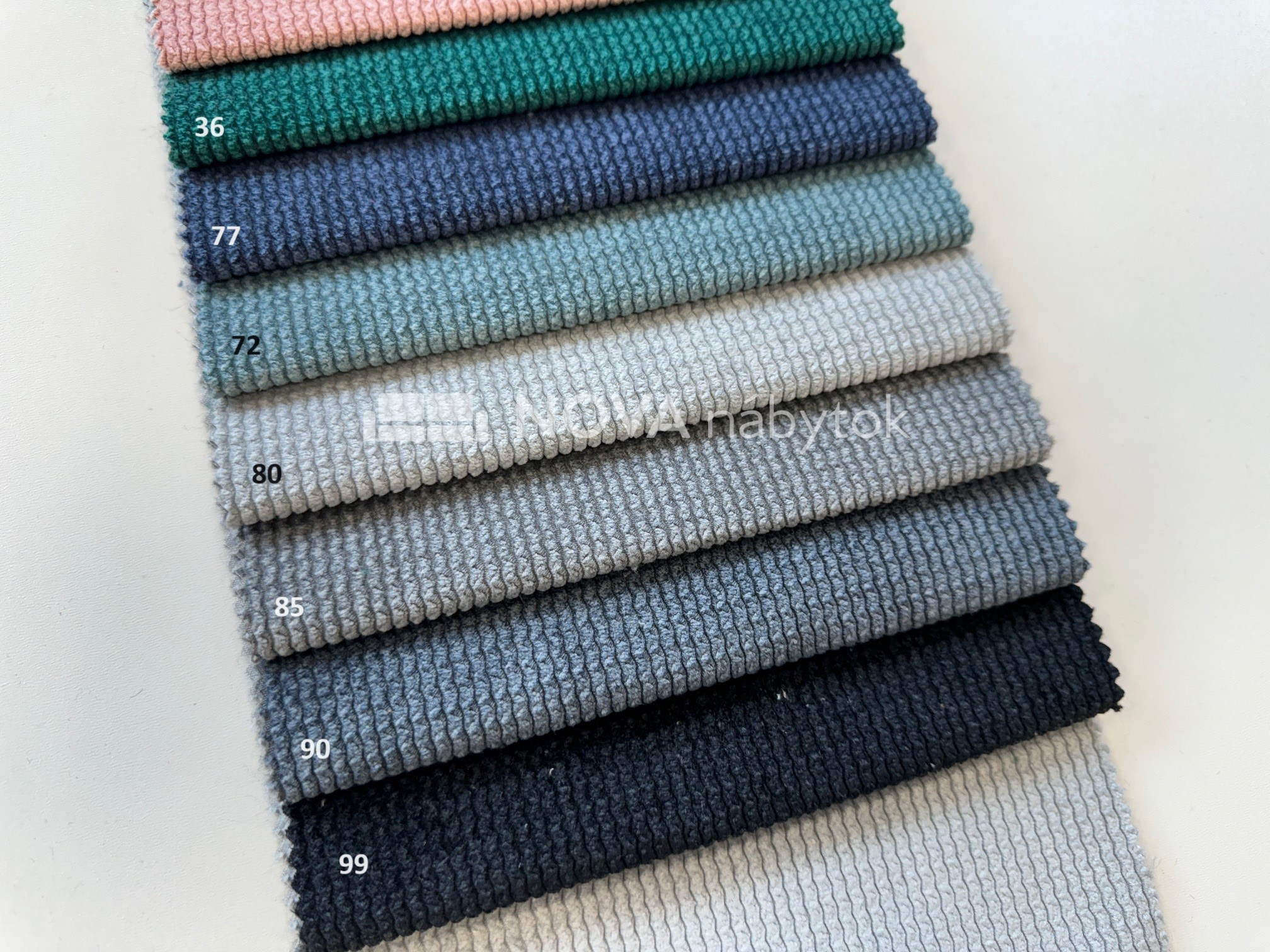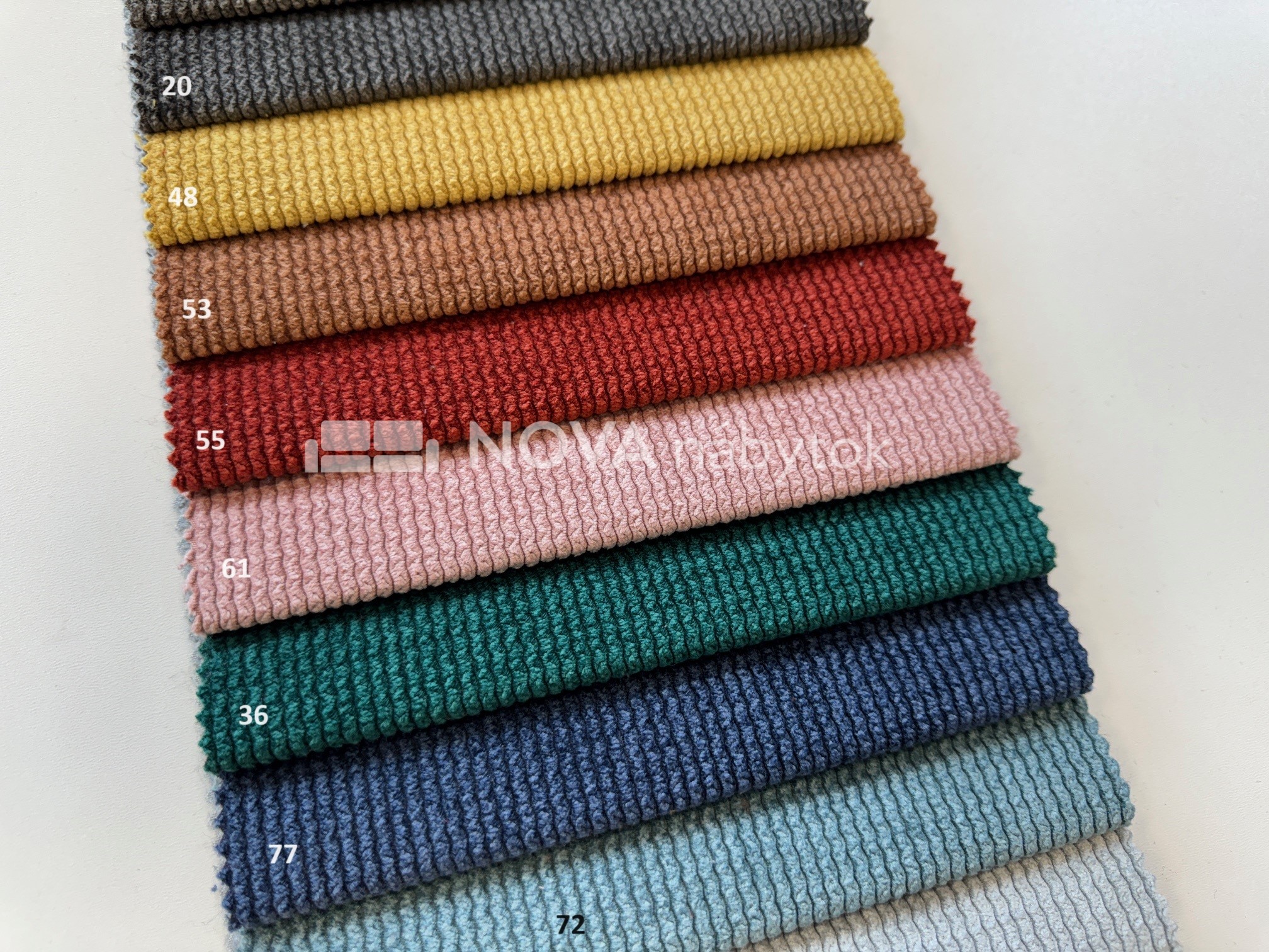 Čalounická látka RUN AGAIN zaujme na první pohled svou moderní strukturou s plastickým žebrováním, které dodává čalouněnému nábytku jedinečný charakter. Je měkká na dotek a zároveň pevná, takže spojuje komfort s dlouhou životností. Barevná paleta zahrnuje jak jemné neutrální tóny, tak výrazné a syté odstíny, díky čemuž se látka hodí do různě laděných interiérů. Využití najde při čalounění sedacích souprav, křesel, pohovek i postelí, ale také pro dekorativní polštáře a další bytové doplňky.