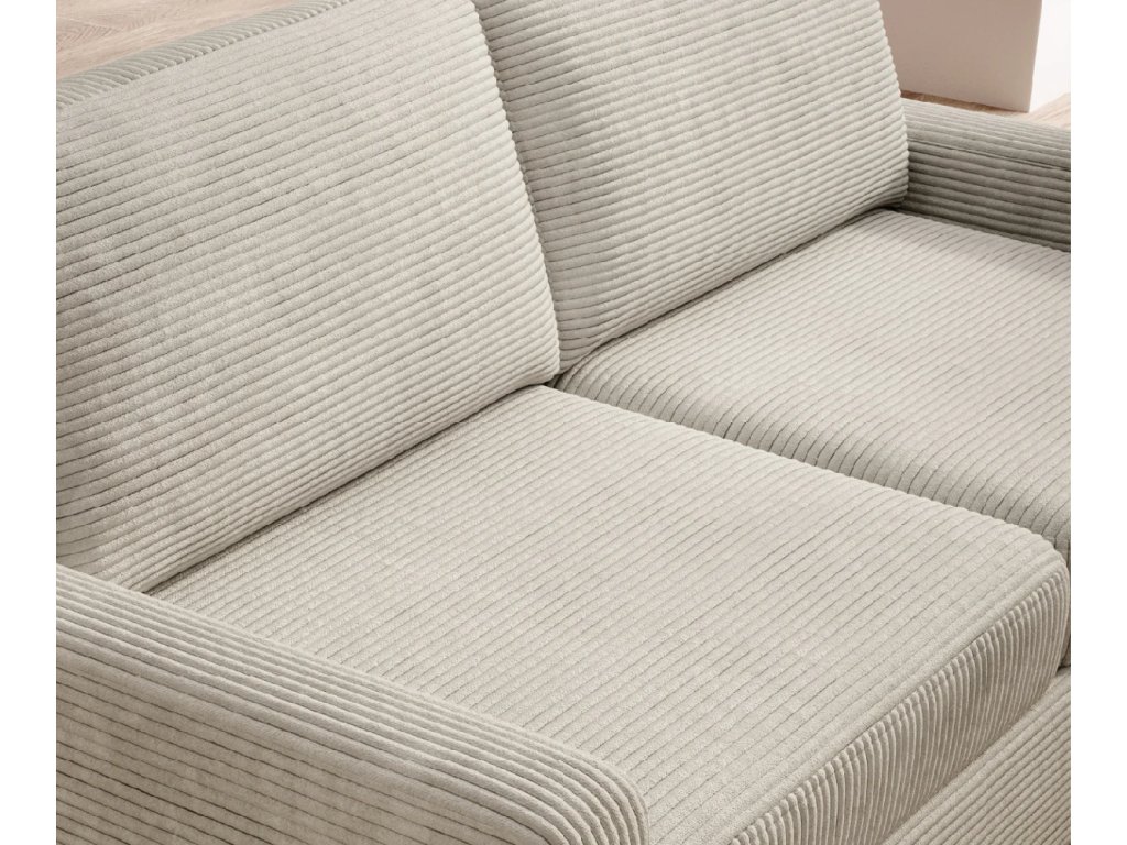 Vysoké černé nožky dodávají pohovce odlehčený, moderní vzhled a usnadňují úklid. Zadní část pohovky je čalouněná látkou, takže ji můžete umístit i do prostoru. Na ilustrační fotografii je zobrazena pohovka v trendové šedé barvě, vybrat si však můžete ze široké škály barev.