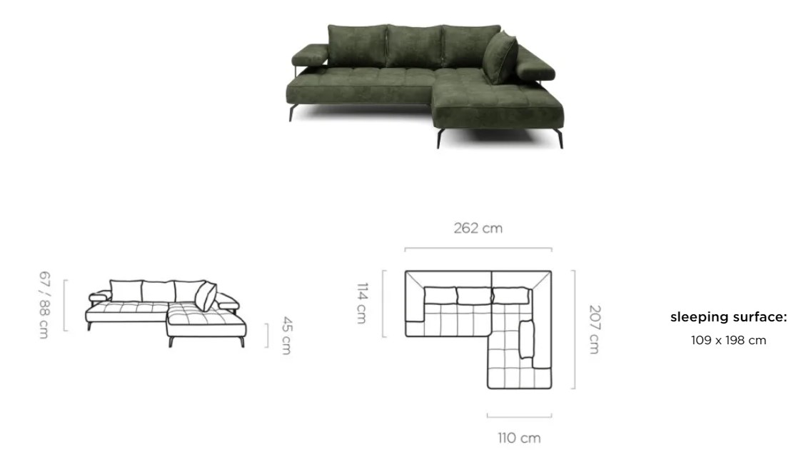 Rozměr: 262 x 207 cm Výška: 67 / 88 cm Výška sedu: 45 cm