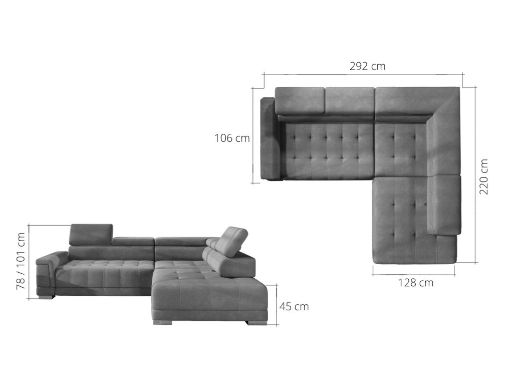 Rozměr: 292 x 220 cm, Výška: 78 / 101 cm, Výška sedu: 45 cm