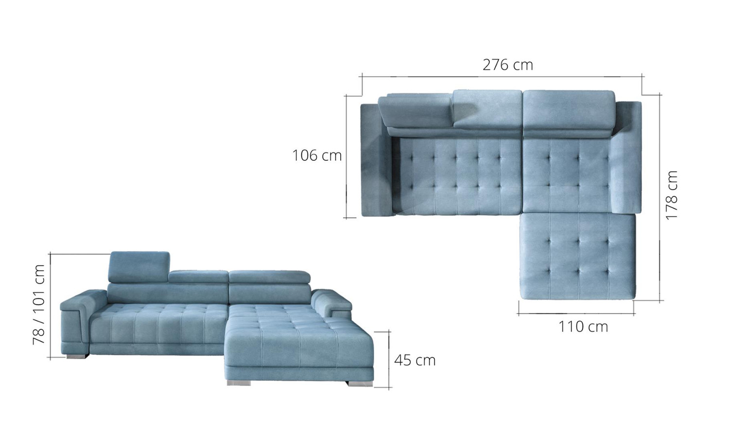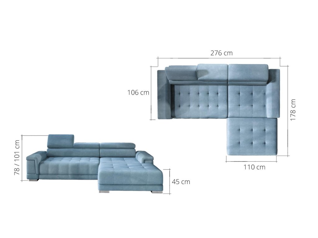 Rozměr: 276 x 178 cm, Výška: 78 / 101 cm, Výška sedu: 45 cm