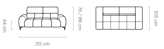 Rozměr: 212 x 105 cm, Výška: 76 / 99 cm, Výška sedu: 44 cm