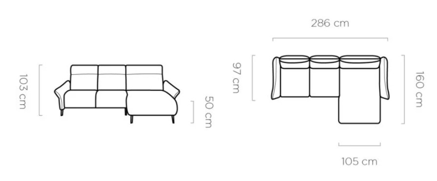 Rozměr: 286 x 160 cm, Výška: 103 cm, Výška sedu: 50 cm