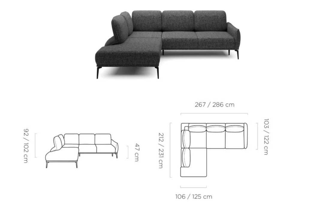 Rozměr: 267/286 × 212/231 cm, Výška: 92/102 cm, Výška sedu: 47 cm