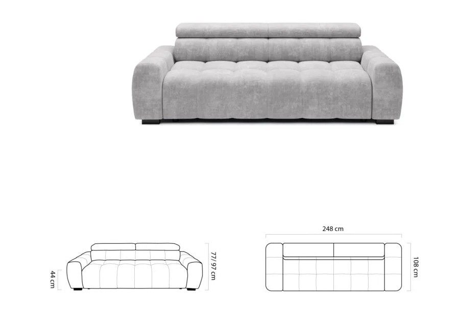 Rozměr: 248 × 108 cm, Výška: 97 cm, Výška sedu: 44 cm