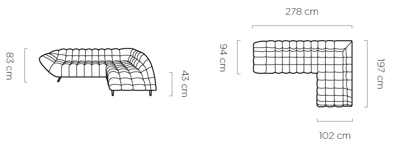 Rozměr: 278 x 197 cm, Výška: 83 cm, Výška sedu: 43 cm