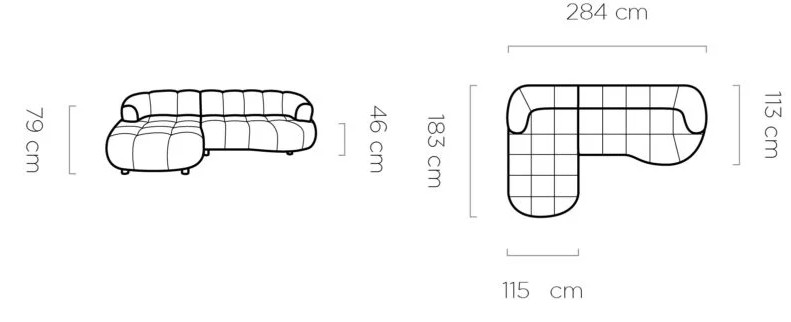 Rozměr: 284 x 183 cm, Výška: 79 cm, Výška sedu: 46 cm