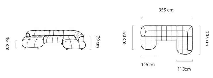 Rozměr: 183 x 355 x 205 cm, Výška: 79 cm, Výška sedu: 46 cm