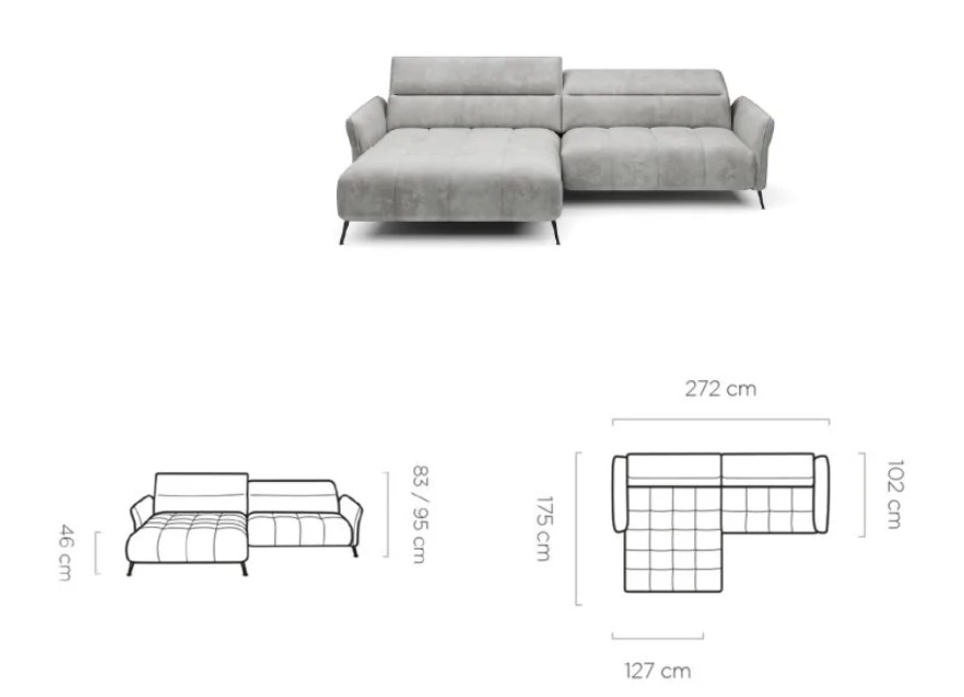 Rozměr: 272 x 175 cm, Výška: 83 / 95 cm, Výška sedu: 46 cm