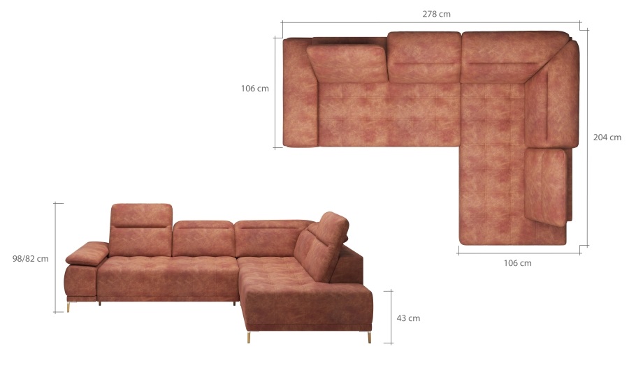 Rozměr: 278 x 204 cm, Výška: 82 / 98 cm, Výška sedu: 45 cm