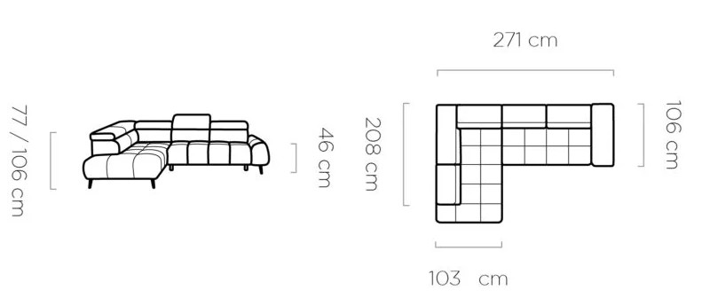 Rozměr: 271 x 208 cm, Výška: 77 / 100 cm, Výška sedu: 46 cm