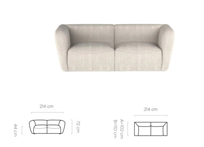 - Celková šířka sedačky včetně opěradel: 214 cm