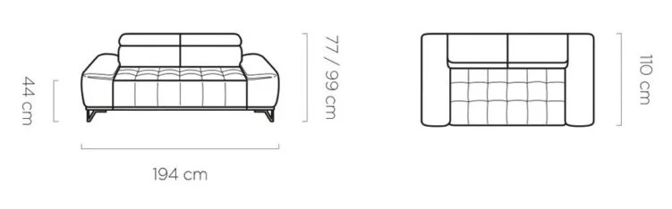 Rozměr: 194 x 110 cm, Výška: 77 / 99 cm, Výška sedu: 44 cm