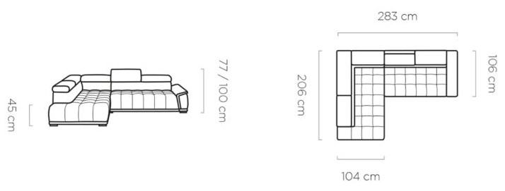 Rozměr: 283 x 206 cm, Výška: 77 / 100 cm, Výška sedu: 45 cm