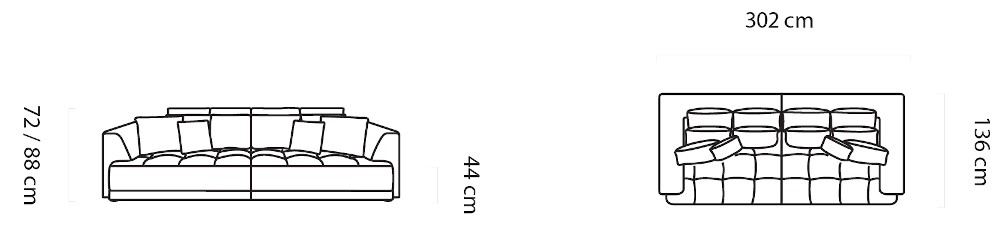Rozměr: 302 x 136 cm, Výška: 72 / 88 cm, Výška sedu: 44 cm