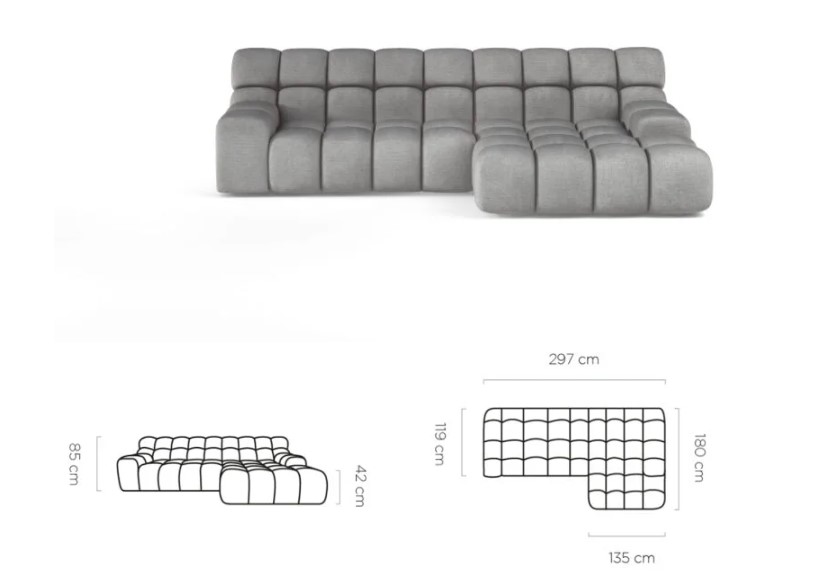 Rozměr: 297 x 180 cm, Výška: 85 cm, Výška sedu: 42 cm