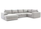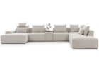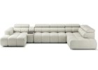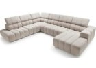 Sedací souprava do U TAURUS XL ve světle béžové barvě v obývacím pokoji, přední pohled s kobercem a lampou v pozadí.
