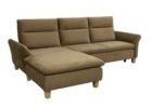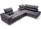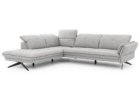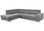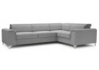 Rohová sedací souprava SOFIA v šedém čalounění s lenoškou vlevo a vyššími opěrkami, pohled zepředu zleva.