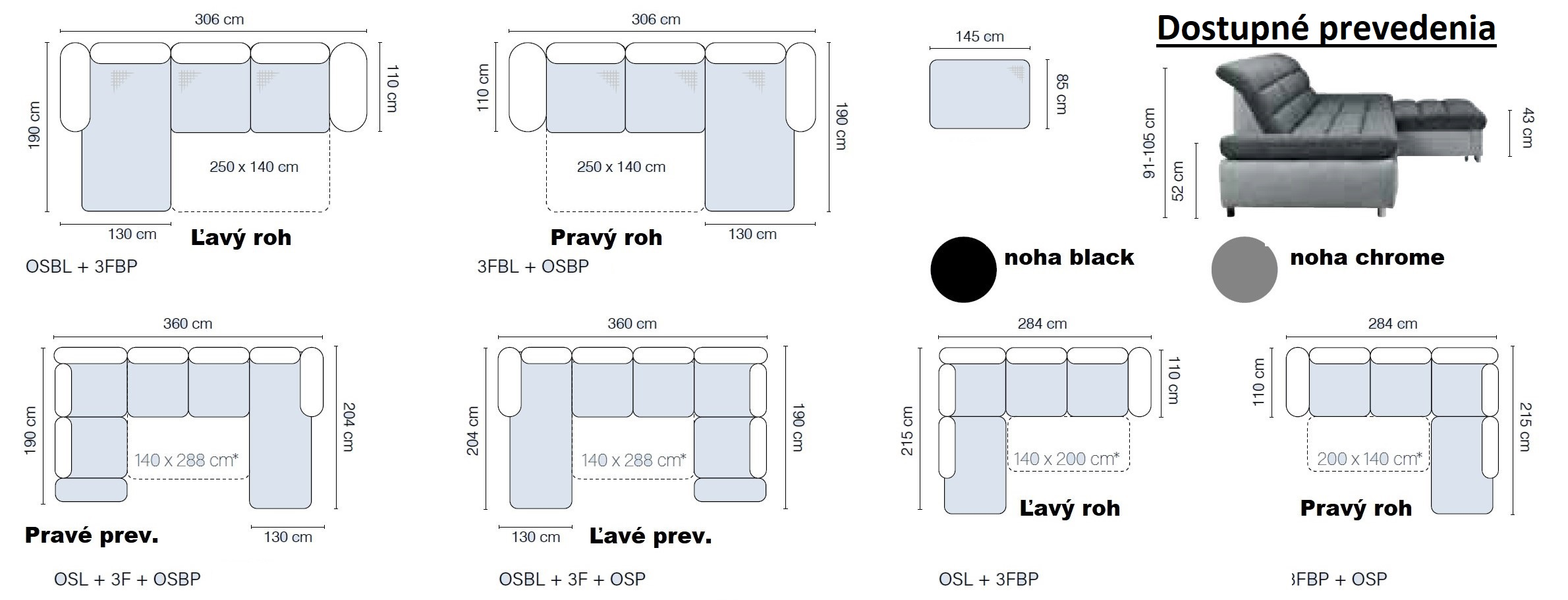 Rozměr: 145 x 85 x 43 cm (zobrazené provedení)